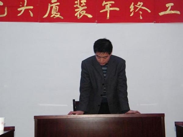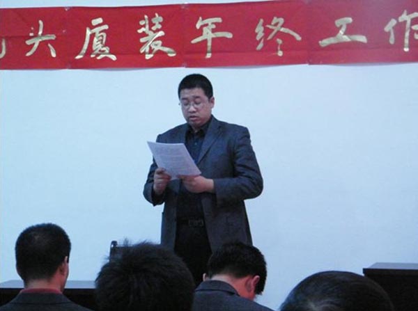 隨著新年鐘聲的臨近,我司于2010年12月31日,下午13:30分在公司三樓會議室召開了2010年年終工作總結(jié)及優(yōu)秀員工表彰大會。此次會議目的既是讓大家對公司成立以來的熬人業(yè)績、明年的整體發(fā)展趨勢、任務(wù)指標,以及公司對每位職工工作的肯定做了一一講解。營造全體員工團結(jié)凝聚、以廠為家、共同奮進的氛圍,回顧過去我司做出了當年建廠、當年投產(chǎn)、當年銷售的令人矚目成就。通過此次會議,公司全體同仁堅信在大家共同努力下,我司產(chǎn)品必能遍布內(nèi)蒙古中西部及陜北地區(qū),并且在所有同行當中永居鰲頭,成為全內(nèi)蒙、全國、全世界第一品牌。